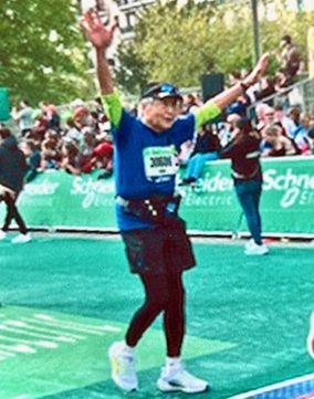 社友の北畑耕一さんは現役引退後74歳にしてジョッギングを始め、78歳でパリマラソンにチャレンジされ完走されました。ニューヨークシティマラソンには80歳で参加され、年代別80歳以上で1位となりました。83歳のときには脊柱管狭窄症の手術をされましたが、その僅か8か月後にフレンチ・リビエラマラソンを完走されました。その後、昨年90歳でシドニーマラソンの、また今年4月91歳でパリマラソンの共に最高齢完走者になるまで、海外21回、国内12回42.195kmのフルマラソンを完走されています。