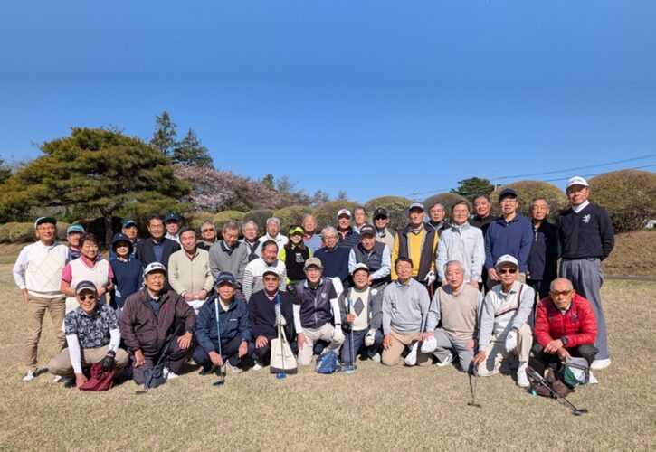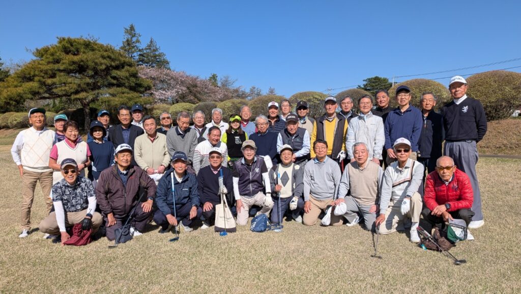 当日は、昨年、一昨年の同会場での荒天を払拭する朝から雲一つない晴天に恵まれ、桜舞い散る絶好のゴルフ日和でした。