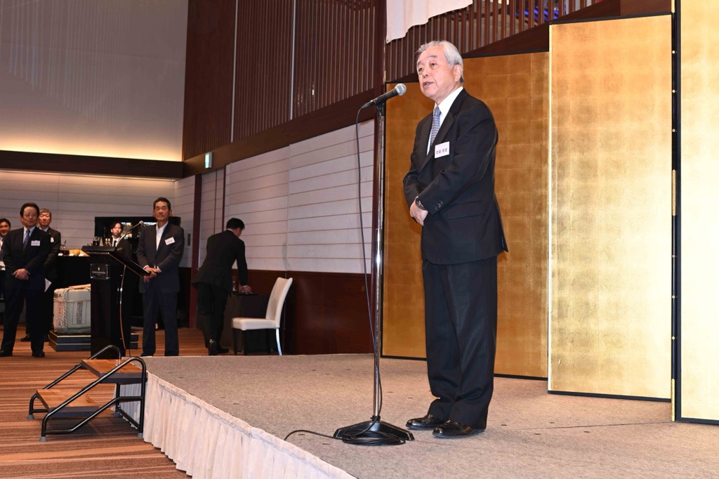 続いて、古田会長からは、昨年12月24日にご逝去された丹羽宇一郎元社長・元会長への哀悼と経営再建への功績を称える挨拶があり、全員で30秒間の黙祷を捧げ、献杯を行いました。