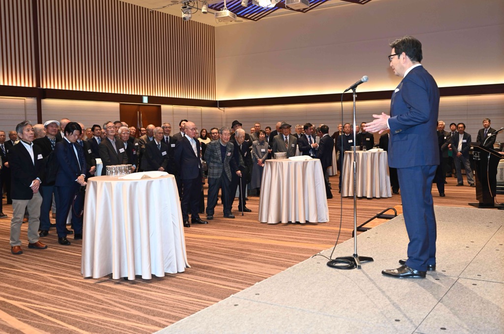 その後、美味しいお酒と食事を堪能しながら、久し振りに再会する社友同志、役員、現役幹部との会話の輪が開き、パーティは約1時間半続きました。